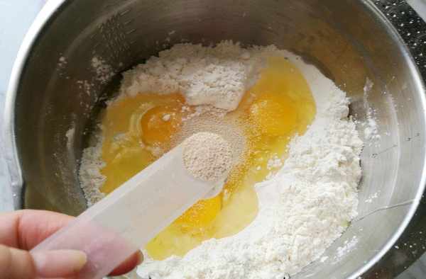 加入雞蛋和酵母稍微攪拌下