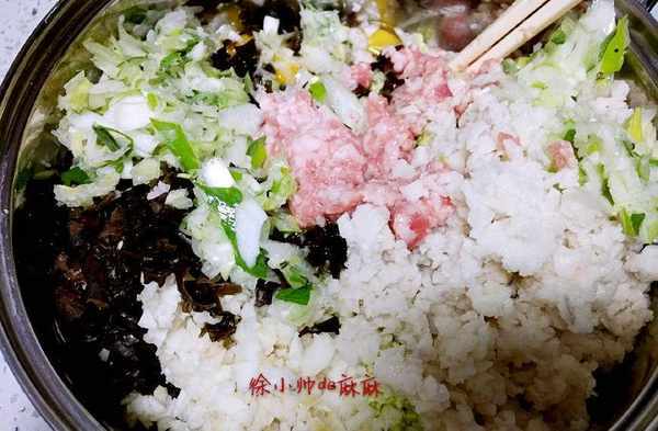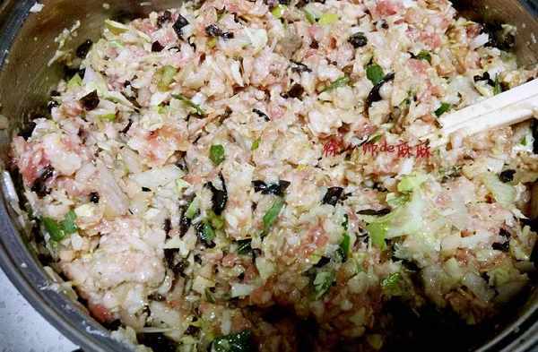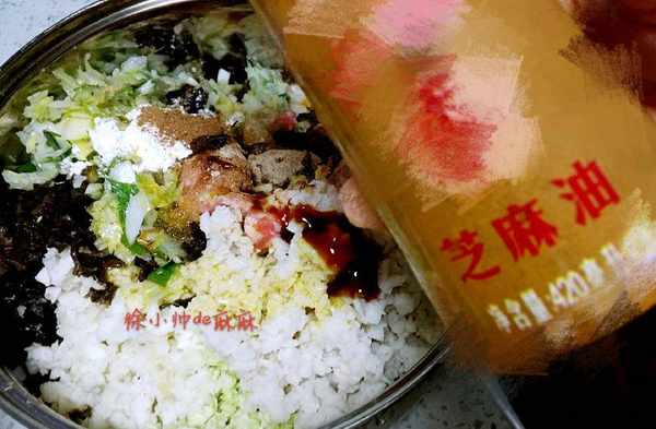 3、和餡:最後放鹽,這樣和的餡料不會出水。
