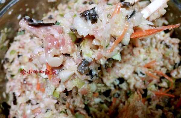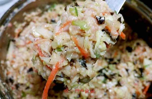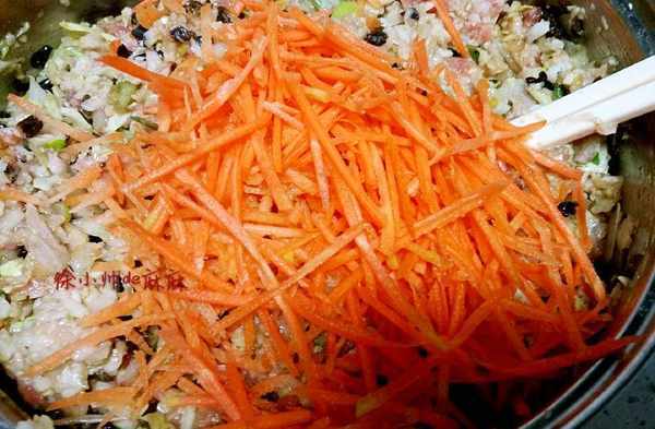2、最後加鹽是防止肉餡出水,胡蘿卜最後添加是我開始忘記瞭,最開始和最後添加都可以的。