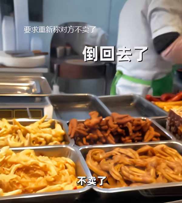 品牌負責人得知情況後,連忙從異地趕過來,隨後一臉大方地請達人在滿桌菜裡隨便挑,看有沒有不足秤的。結果沒有兩樣,還是不足秤。屏幕裡,這位負責人尷尬得一時語塞,有網友形容“他臉都快綠瞭”。