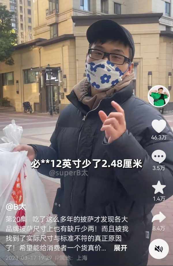 比如披薩不夠尺寸。依然是B太的暗訪,必*客的12英寸披薩直徑少瞭2.48厘米,樂*撒12英寸的少瞭1.48厘米。兩傢的原因出在同一個地方:烤盤(模具)的尺寸小瞭,問題從根上就存在瞭。
