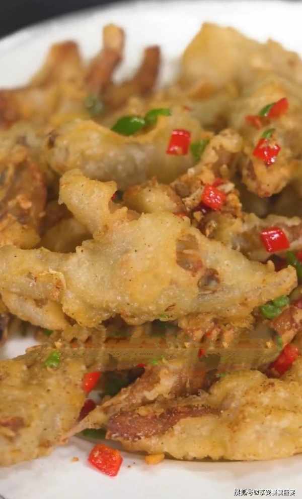 椒鹽脆皮雞爪詳細做法主料:美國大雞爪10隻。醃料:料酒12克、食鹽3克、白糖3克、雞精2克、白胡椒粉0.5克。脆皮糊:清水100克、玉米淀粉50克、面粉30克、糯米粉25克、泡打粉1克、食用油適量。詳細做法:1、把雞爪去掉爪尖,從中間切開一分為二,放入盆中,加入適量面粉和清水清洗,再用清水清洗幹凈,備用。2、把清洗幹凈的雞爪放入鍋中,加入適量清水淹沒,倒入少許料酒,大火燒開後撇去浮沫,焯水5分鐘,撈出,用溫水清洗幹凈,放入容器中,備用。3、把處理好的雞爪中加入料酒12克、食鹽3克、白糖3克、雞精2克、白胡椒粉0.5克抓拌均勻,醃制5分鐘後備用。4、把玉米淀粉50克、面粉30克、糯米粉25克、泡打粉1克放入碗中,加入清水100克攪拌稀釋成酸奶狀,然後滴入少許食用油拌勻,備用。5、鍋中加入適量植物油,油溫六成熱時,把雞爪先拍一層幹淀粉,然後裹上脆皮糊,下入油鍋中,炸至定型,撈出。把油溫升至七成熱後再次下入雞爪,炸至表層酥脆後撈出控油,備用。6、炒鍋中加入適量植物油,放入25克蒜丁炒香,然後再放入青紅椒圈40克,炒香後下入炸好的雞爪,再放入成品椒鹽3克,十三香1.5克,翻拌均勻後即可出鍋。