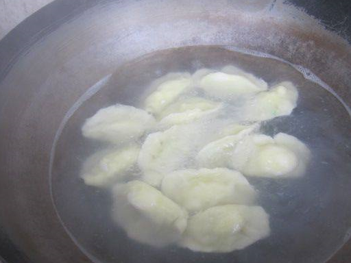 13、鍋中放水燒開,放入餃子,蓋蓋,大火煮開