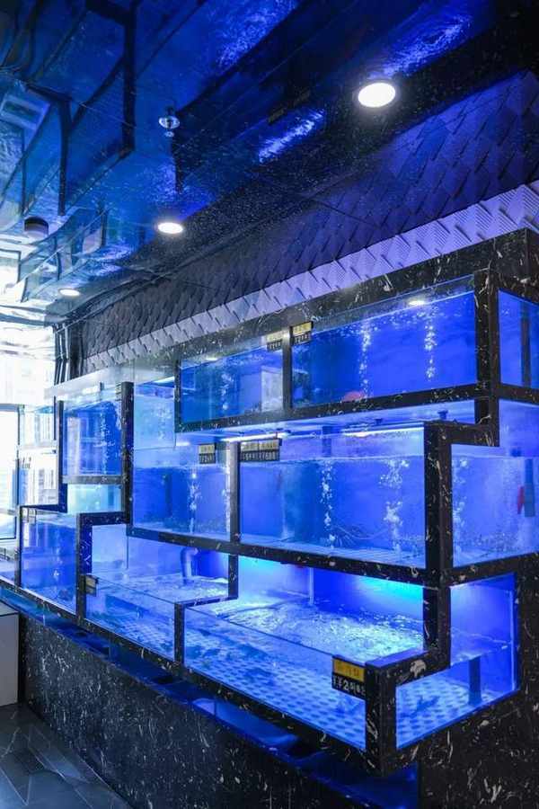 店裡主打的是淮揚菜、粵菜、還有進門就看到瞭碩大的一面海鮮展示陳列區,各路生猛海鮮,平價海鮮都有,這裡確切來說更算是一個融合創新中餐私房菜!