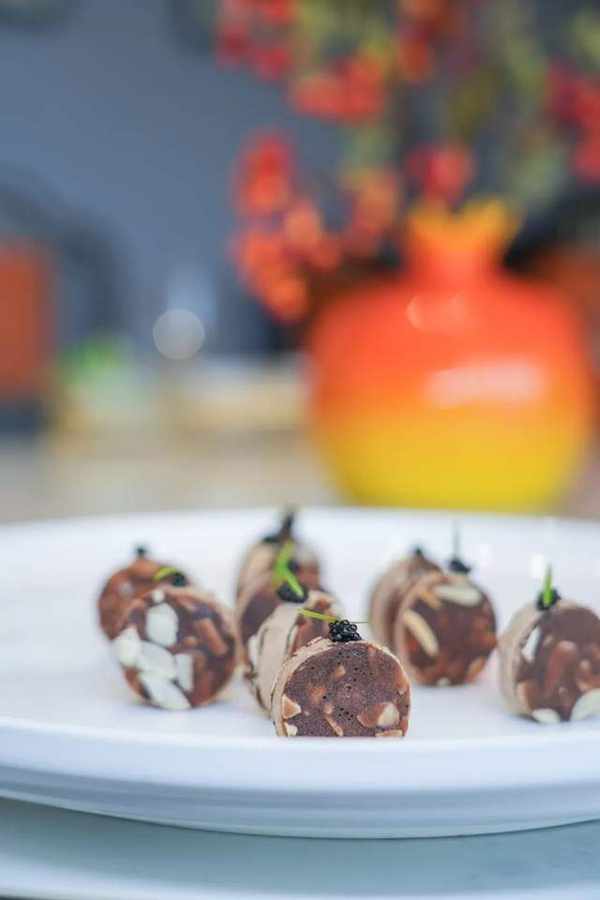 還有澳洲指橙腐乳山藥,下面墊的是拇指橙,中間放腐乳山藥,也都是自己手作的,外觀就看得出精致用心!