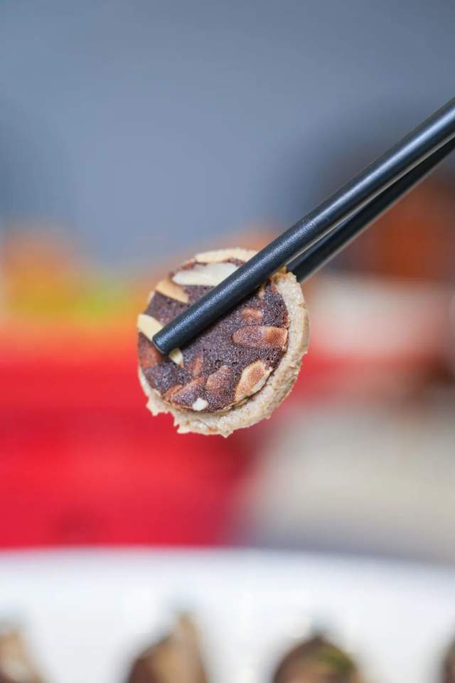 比如這款裡面是鵝肝醬,上好的鵝肝要泡一晚上,蒸的時候還要費一些時間,調制醃制等復雜工序,手動去筋。