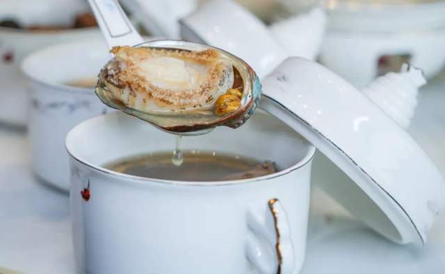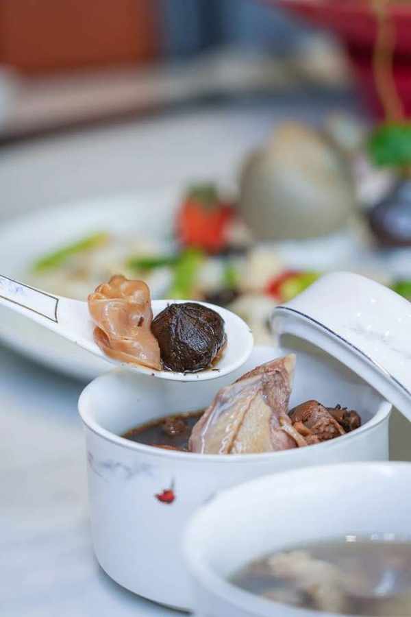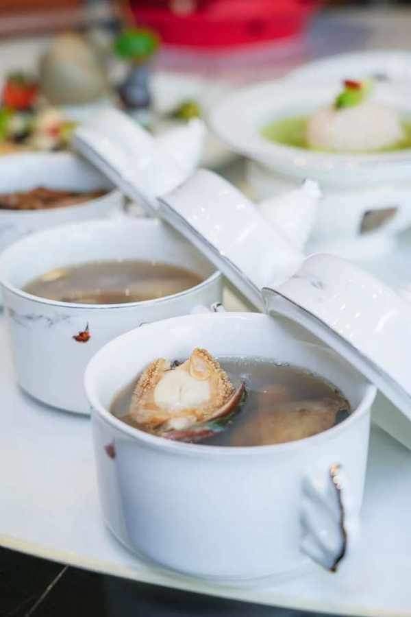 石斛鮑魚老鴿湯,熬制5-6小時,再蒸制2個小時選用的都是空運來的優質食材,花雕黑蒜老雞湯,先熬再蒸,精選優質黑蒜,需要你自己來品味!