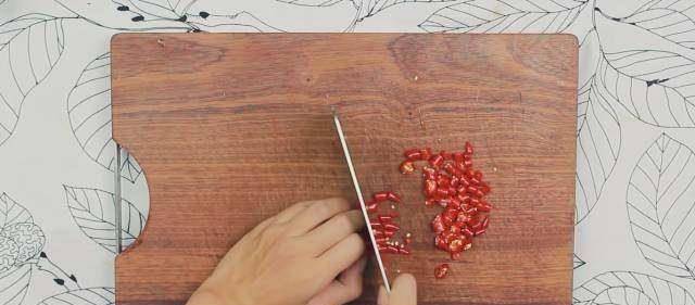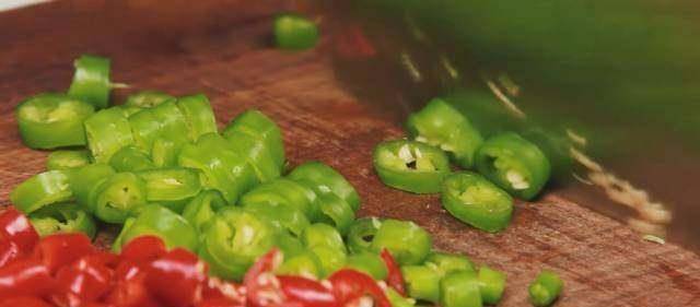 ▲這時來切辣椒,小米辣切圈,青椒切圈備用;