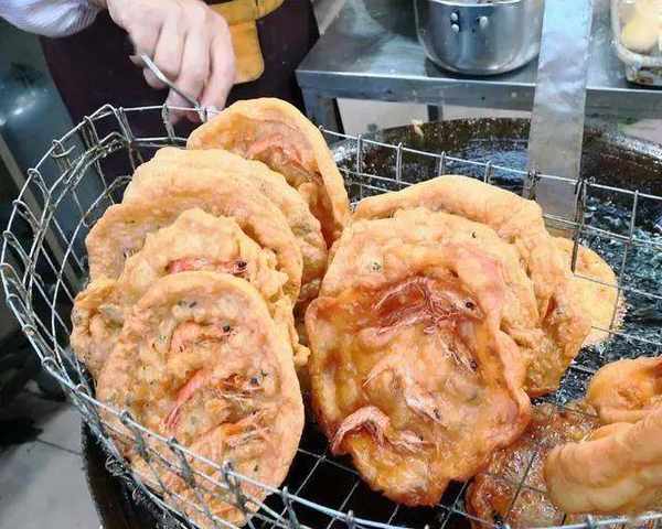 在湛江,蝦餅可以說是最受歡迎的小吃瞭,你們還記得小時候大街小巷裡賣炸蝦餅的小攤兒嗎?用面糊配上韭菜末或者蔥花,用炸餅的勺子盛一勺面糊,上面擺上鮮蝦,放入油鍋中炸定型後,翻面炸到兩面金黃,蝦餅外酥裡嫩,鮮味十足,並夾帶著海蝦的清香,味道讓人一嘗難忘。