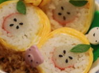 3、最後一步就是所白米飯拌上壽司醋,鋪在海苔上,所有的材料一起放入再卷成筒狀,切片即食。