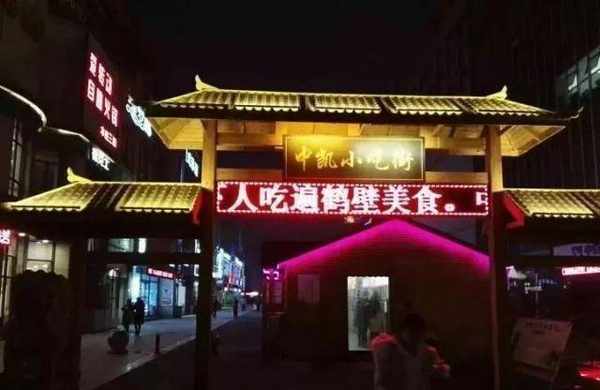 中凱小吃街位於鶴壁市淇濱區興鶴大街358號,入口處是一木制牌坊,飛簷翹角,古色古香,再向內可以看到一排排幹凈整潔的小木屋,與牌坊相互呼應,對稱統一。離飯點還早,這裡卻已是人潮洶湧。