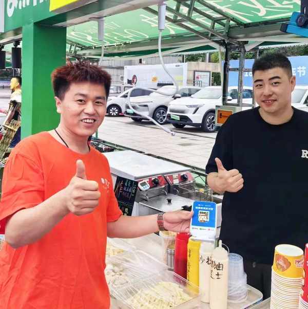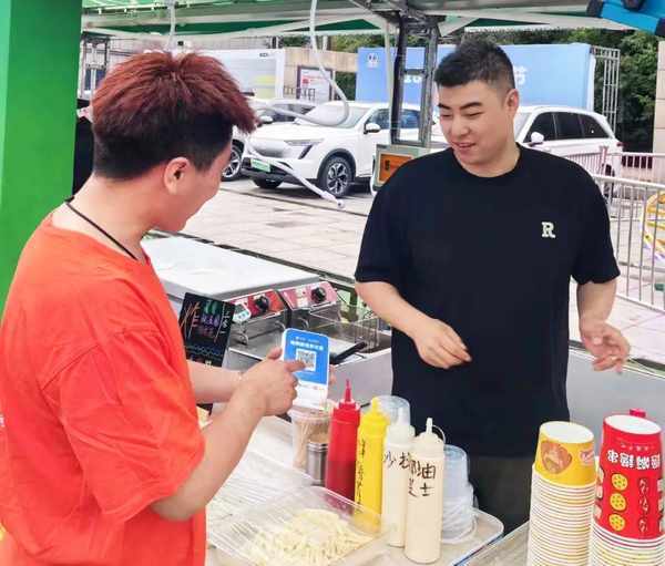那是5月的一天,時闖按照慣例一條一條掃街尋找客戶,偶然中來到瞭南關夜市街,憑借真誠的服務獲得瞭三傢美食攤主的青睞。夜市街裡商傢眾多,響亮的好噠收款提示音很快為他帶來瞭更多的轉介紹,其中就包括62傢檔口的大排檔負責人。