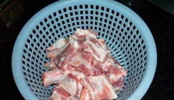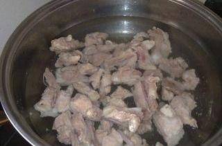 第二步,將買來的排骨用清水洗幹凈,先洗掉一些明顯依附在排骨上的臟東西,然後起鍋燒水,排骨冷水下鍋,加入料酒以及生薑,大火燒開,焯水時間10分鐘左右,在焯水過程中,由於排骨的血水被煮出來,所以在水面上會有很多浮沫,這些浮沫要舀出來。排骨焯水完畢之後,就可以用過濾網把排骨撈出來,這個也叫瀝水,經過這一步排骨身上的臟物質就沒有瞭,腥味也會大大減少,排骨這樣煮出來基本上已經有5成熟瞭,顏色也會有一些的變色,這也是為後面煮出來更好的肉質以及排骨更加的酥脆,後面吃起來,去唆裡面的湯汁會更加有味。