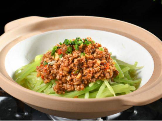 萵筍也屬於比較常見的一種蔬菜,它具有安神鎮靜的效果,對於一些有神經衰弱而造成睡眠問題的人群有非常大的幫助,這裡也不得不提有紅雞毛店的肉醬萵筍煲瞭,將萵筍切絲焯水,頂上鋪一層緊實的肉醬,淋上秘制醬汁,口感豐富,萵筍絲脆嫩爽口,肉醬鮮美不油膩,在滿足味蕾的同時,還解決瞭容易失眠的問題。