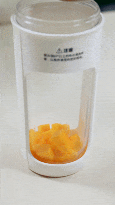 再取100克的果肉,用料理機攪成細膩的果泥。考慮到口感口味,我一般會挑甜度更高的水果做,如果孩子愛吃點甜的,或者咱們自己吃,可以再額外加點糖或者蜂蜜調味。