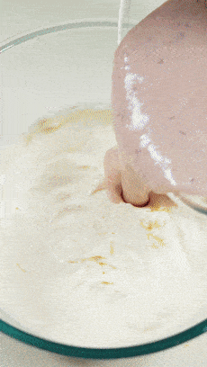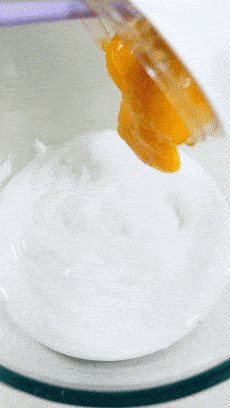 接下來就是繼續重復一遍剛才芒果厚切酸奶的步驟,往淡奶油中加糖,攪打到濃稠有波紋的狀態。