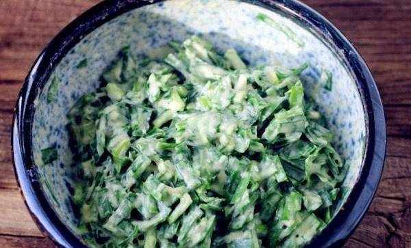 做韭菜丸子的方法很簡單,首先我們要把韭菜清洗幹凈,在切成碎末,我們都知道炸蔬菜的時候都會變色,這樣看著就沒有食欲,我們在做韭菜丸子時,放一勺“它”,不加一滴水,翠綠不變色,酥脆又松軟!那就是要放上一勺的植物油,攪拌均勻好後再炸的時候,就可以翠綠不變色,吃起來也是鮮香酥脆!