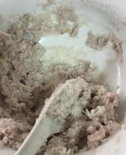 趁熱,用勺子,加兩三勺白糖,捻碎,