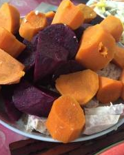 【無芋圓,不夏天】買的芋頭、紫薯、南瓜、自己蒸熟後,碾成泥再加木薯粉做成的三色園子,QQ的很好吃!就是傢裡沒有蜜豆瞭有點美中不足!很喜歡的一道夏日甜品—芋圓,自己在傢裡做的口感同樣棒棒噠,聽說正宗的是用地瓜粉,但我習慣用土豆薯粉來做,口感非常Q彈,軟軟韌韌的,非常好吃哦~可以搭配各種糖水或牛奶水果等,風味更佳