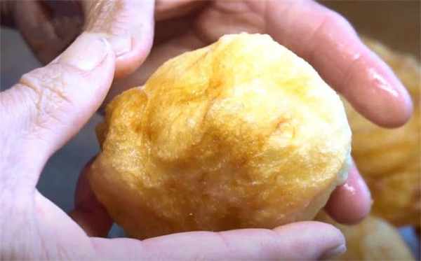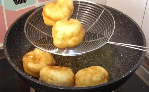 4.等它炸至兩面金黃之後就可以出鍋瞭,這樣這道炸面泡就做好瞭。