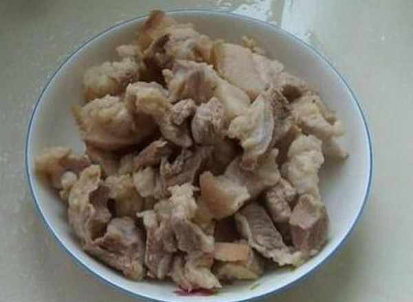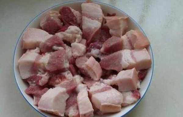第1步首先將買回來的五花肉用水清洗幹凈,然後清除五花肉皮,表面殘留的豬毛。改刀將五花肉切成大小均勻的肉塊兒備用。