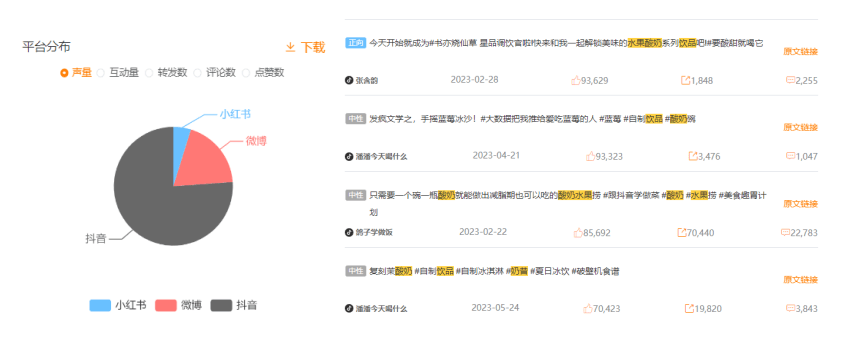 2023年1月-5月酸奶飲品相關推文平臺分佈及推文示例