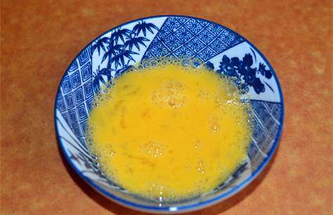 3.2個雞蛋打入碗中,打散備用。