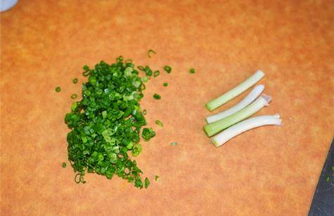 1.香蔥清洗幹凈,將蔥白切段,蔥綠切碎末備用。