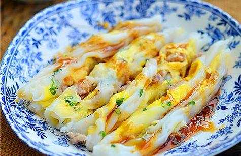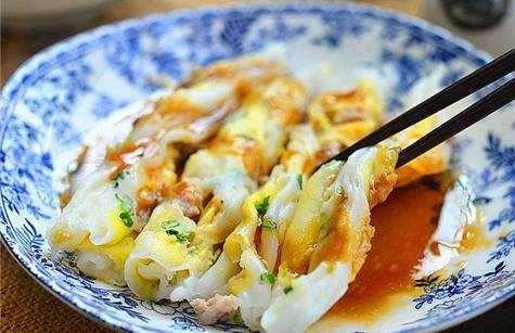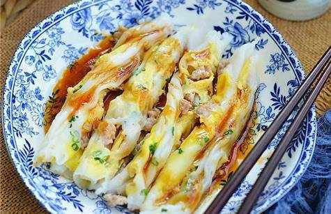 13.將蒸好的腸粉擺入盤中,淋上醬汁即可食用。