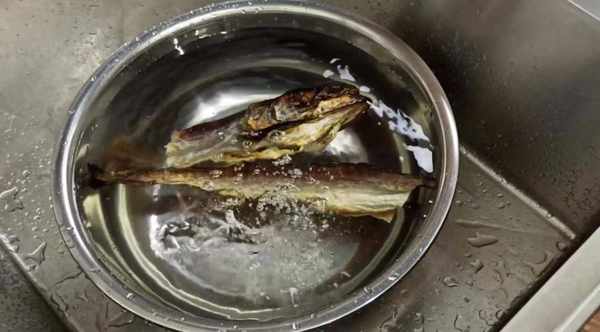 2、柴魚泡20分鐘後,清洗幹凈,魚鰓去掉,魚腹清洗幹凈,浸泡4個小時以上,或者過夜。
