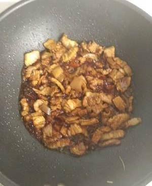 5、大火熱鍋放入肥肉,把油都練出來後放入蔥薑和八角、紅辣椒,接著把其他的肉肉放進鍋裡翻炒,放料酒、生抽、老抽和糖,翻炒均勻後蓋上鍋蓋等待兩分鐘。