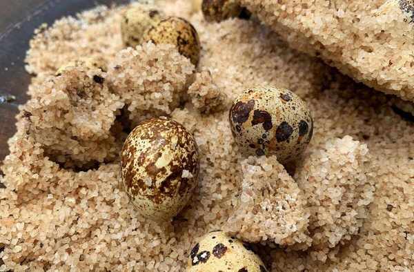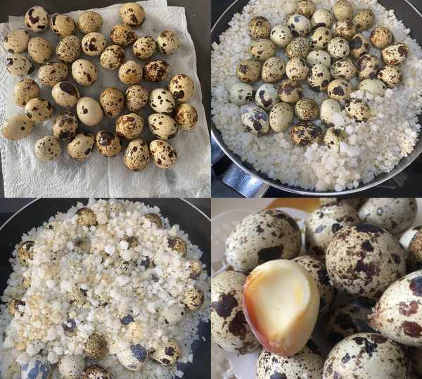 食材:鵪鶉蛋500克、粗鹽1000克