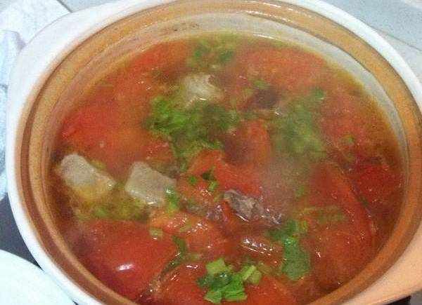 材料:魚湯、蕃茄、芹菜、豬肉、薑片、香油、鹽、糖、酒、白胡椒粉做法:1、蕃茄先用滾水燙熟,去皮切塊備用,豬肉切片,芹菜洗凈切段。2、取湯鍋,倒入高湯中火煮開,放切好的豬肉、芹菜、蕃茄、薑片煮10分鐘。3、轉小火續煮10分鐘,加入香油、鹽、糖、酒、白胡椒粉調味即可。