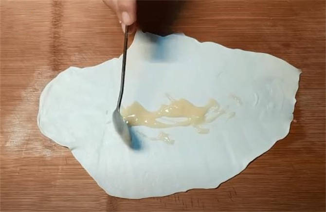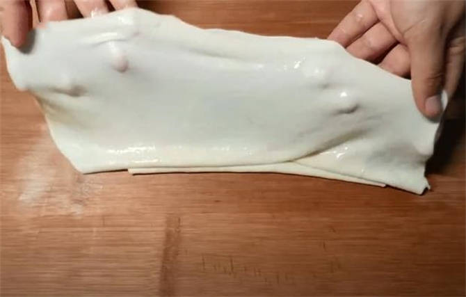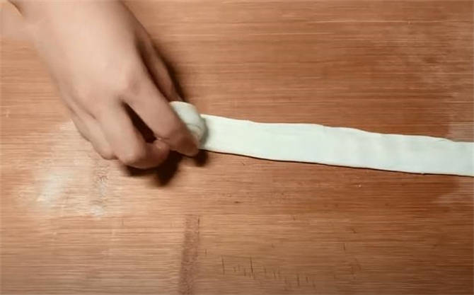 5.扯起面皮,像疊扇子那樣上下來回對折。