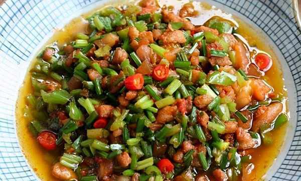 韭菜半斤香幹4片五花肉150g幹辣椒2根鹽0.5g雞精0.5g醬油適量蠔油適量薑3片