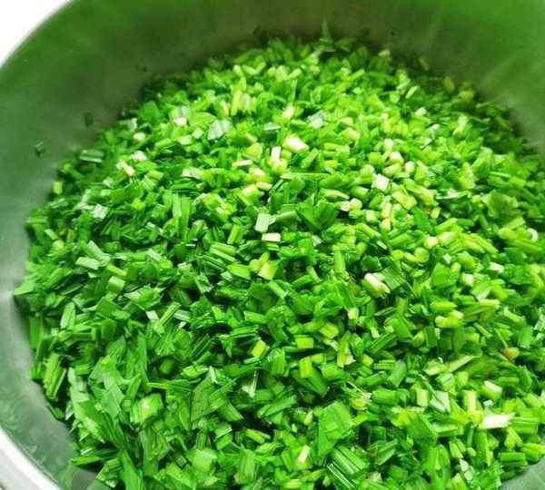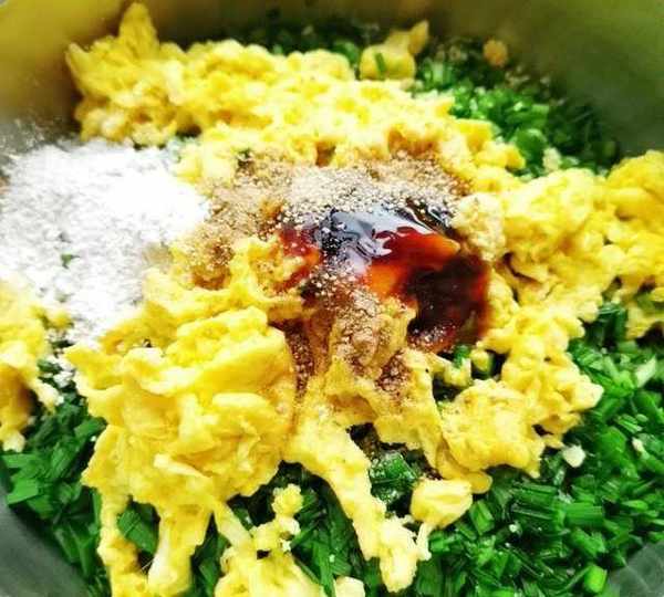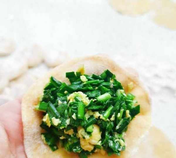 原料:全麥粉、雞蛋、韭菜、油、鹽、雞精、蠔油。
