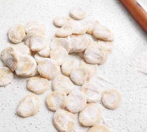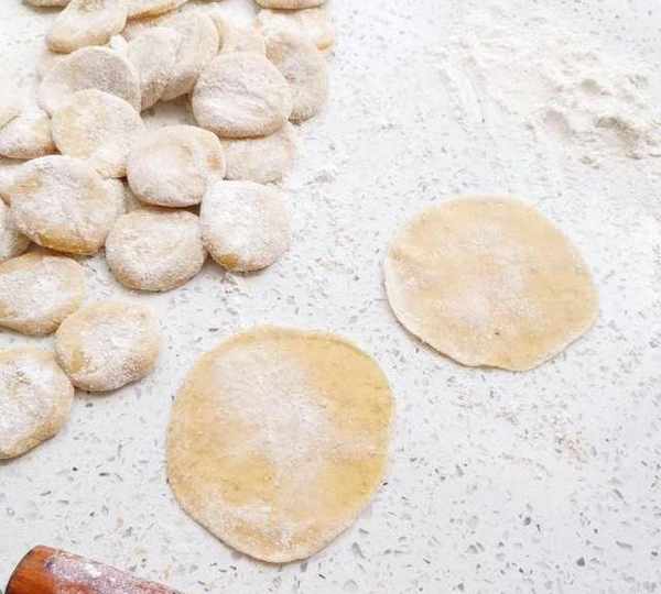 第14步、搟成中間厚邊上薄的圓面片(直徑約為8cm左右)。