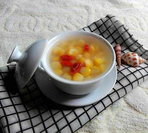 玉米:一個、枸杞:5粒、水:適量、冰糖:少量、玉米淀粉:少量