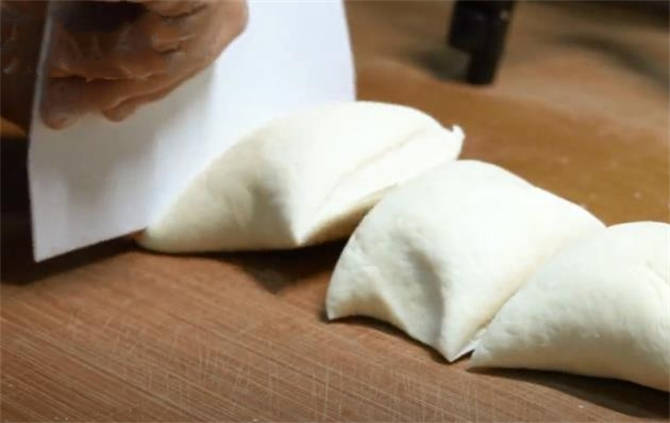 1.準備300g面粉,放入3g鹽增加面粉的筋性,用適量稍微燙手的溫水和面,一直攪拌到沒有明顯幹粉的時候,下手揉成面團,揉好的面團先不用餳,繼續整理形狀滾成長條,下大小均勻的劑子。