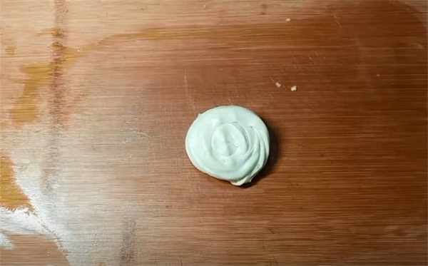 4.現在劑子已經餳好瞭,取一個劑子先用手按扁,然後搟成比較薄的餅皮,大傢註意不要搟的太薄,容易爛掉,搟好之後,取適量餡料塗抹在中間,稍微平鋪一下。