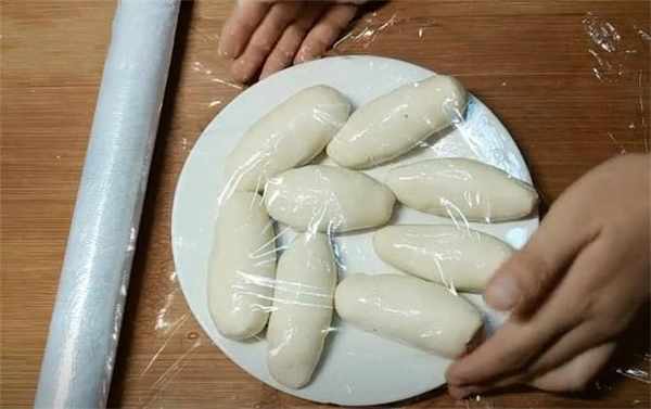 2.把每個劑子稍微揉一下,整理成圓柱形,再在劑子表面刷一層油鎖住水分,蓋上保鮮膜餳面半個小時,餳面的時間越長做出來的成品越好。