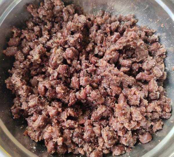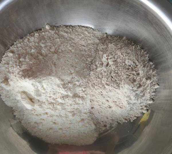 原料:全麥粉、白面粉、紅豆、白糖、油。