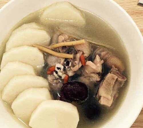 土雞:半隻、山藥:230克、薑片:兩片、水:適量、清補涼:一包、鹽:適量