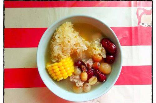 排骨:300克、銀耳:1朵、蓮子:50克、紅棗:8顆、玉米:一根、花膠:1個、幹桂圓肉:8個、鹽:少許