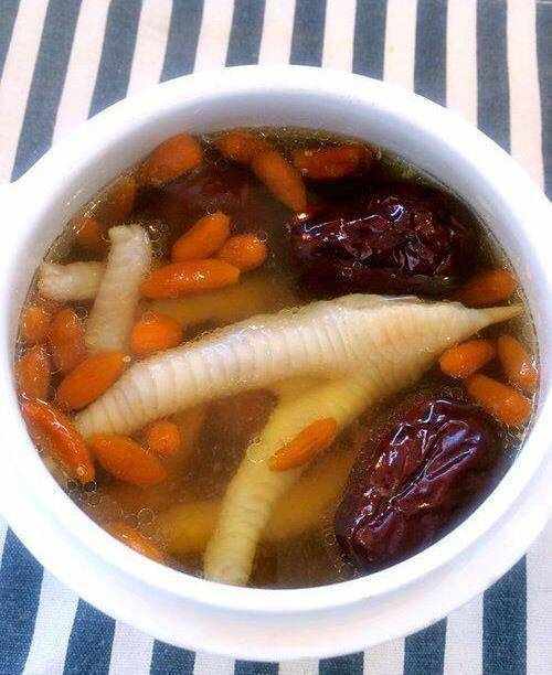 紅棗:3個、枸杞子:5克、鹽:少許、冰糖:少許、料酒:適量、黨參:10克、雞爪:3個