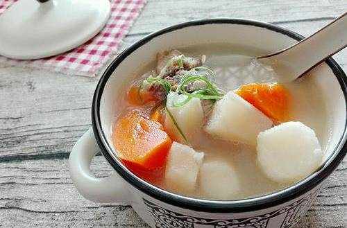 扇骨:250克、淮山:300克、葛根:200克、紅蘿卜:200克、薑片:適量、鹽:適量、蔥:少許