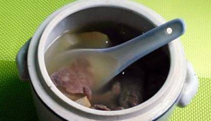 8、一盅潤肺清肺的川貝雪梨豬肺湯就燉好瞭。
