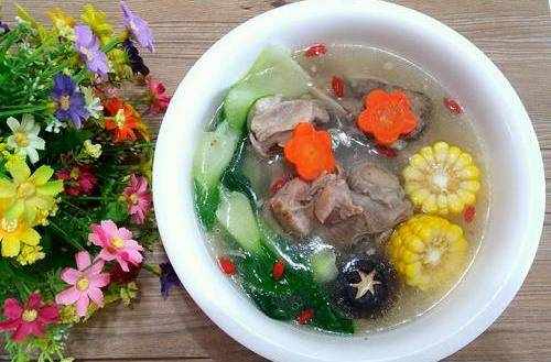 筒子骨:一根、玉米:適量、胡蘿卜:適量、青菜:適量、枸杞:適量、生薑:適量、鹽:適量、醋:適量