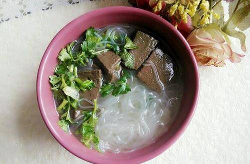 羊血:100克、龍口粉絲:一小紮、香菜:適量、鹽:適量、蔥薑蒜碎:適量、胡椒粉:適量、清水:適量、芝麻香油:少許