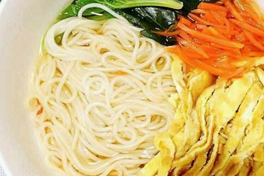 接下來是我老爸端出來的,他是購買現成的圓面條來作為食材。在顏色搭配上還是挺講究的,紅蘿卜絲結合木耳和青菜,看上去就很想吃。老爸是想著這碗面條都能吃,小孩子不能吃辣椒,大人想吃瞭可以單獨弄出來再放辣椒。這樣的周到想法還是很貼心的。隻不過和老媽的相比,湯汁有點淡瞭!